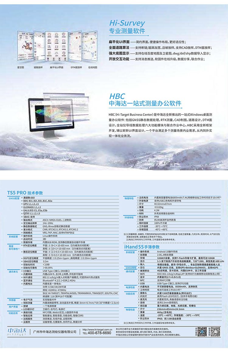 中海達(dá)RTK-TS5Pro慣導(dǎo)版,輕便小巧、快速測量,中海達(dá)集團旗下北斗海達(dá)品牌全新一代RTK-TS5Pro,中海達(dá)GPS測量儀以輕便小巧為理念,讓操作變得更簡單,快速提升測量效率。  機身...
